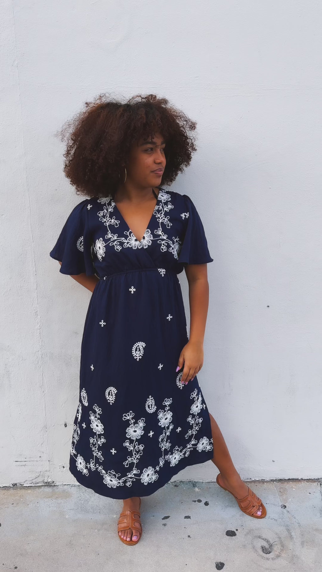 A beautiful dress with embroidered flowers, ideal for a garden stroll or outdoor dining🌷